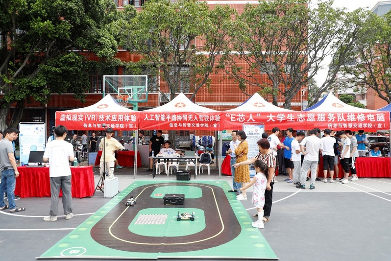 前人工智能的发展主要受益于以深度学习为代表的机器学习技术,这让计算机可以从大量数据中自主学习与进化,无人驾驶技术依赖于感知的输入、计算模型以及道路场景数据。因为技术先进、互动性高,在活动中大放异彩,引来大量同学前来观摩咨询和交流互动,相信在那些小朋友心中,也埋下了一颗科技的种子。