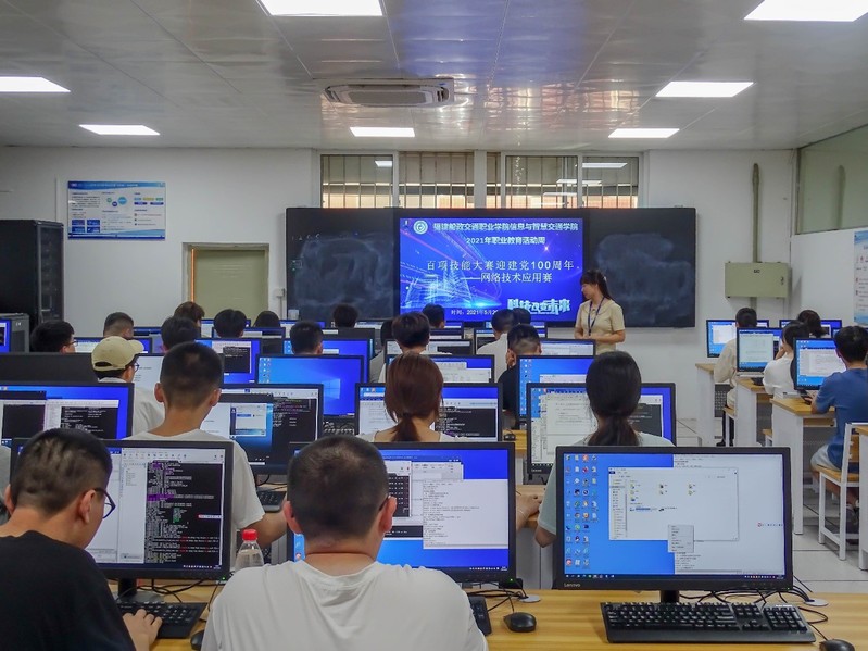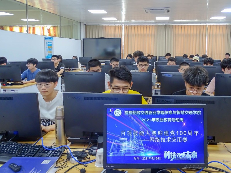 为全面深入贯彻习近平总书记关于网络强国的重要思想,深入宣传贯彻《网络安全法》,落实我市和我校关于网络安全的工作要求,信息与智慧交通学院于5月26日下午在二号楼404举行网络技术应用大赛。现场充满紧张的氛围,为了能取得一个好成绩,选手各自都打起了十二分的精神来对待这次比赛。