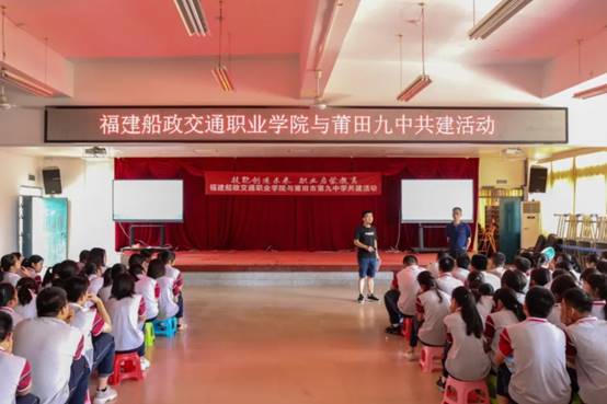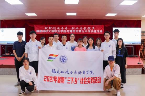 为大力宣传职业教育改革发展成果,让更多中学生感受现代职业教育特色与魅力。2021年7月10日,福建船政交通职业学院信息与智慧交通学院副院长陈自力,刘伟和谢容丽老师带领2021年大学生暑期“三下乡”社会实践团赴莆田市第九中学开展“技能创造未来,职业启蒙教育”共建活动。
