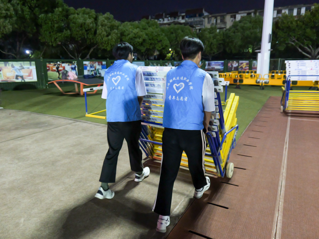 项目比赛开始前,学生志愿者们早早来到场地,进行着紧张而有序的准备工作。他们认真地清扫场地、摆放器材,为运动员们创造一个良好的比赛环境。