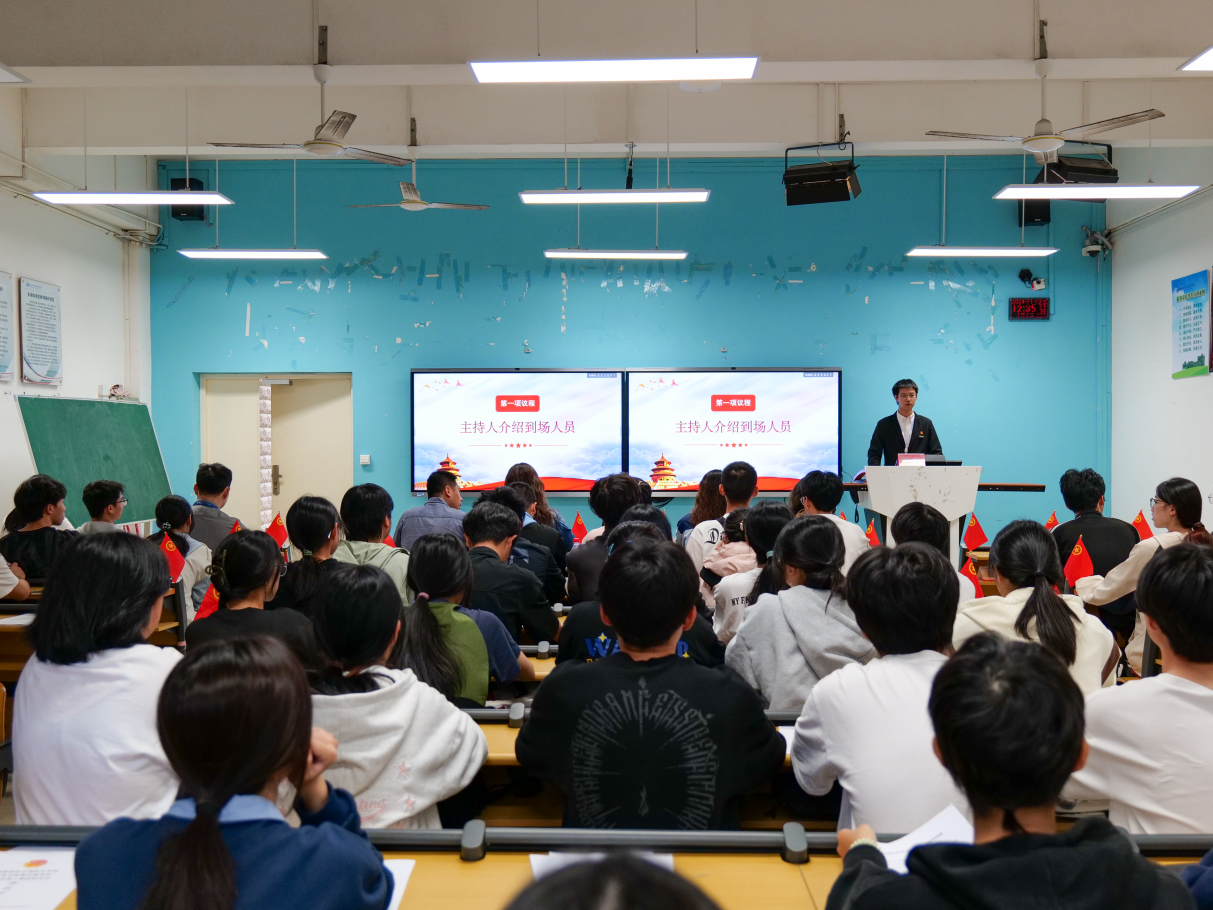 在充满希望与挑战的新时代背景下,中国共产党第二十届中央委员会第三次全体会议顺利召 开,为我们明确了前行方向。为积极响应党的号召,认真学习、深刻领会会议精神,并将其内化于心、外化于行,在各自的领域中发光发热,以实际行动为祖国发展贡献青春力量。2024 年 11 月 13 日,信息与智慧交通学院在福道园自强楼 1 - 5 教室举行了 2024 年第三期团校培训班开班仪式。