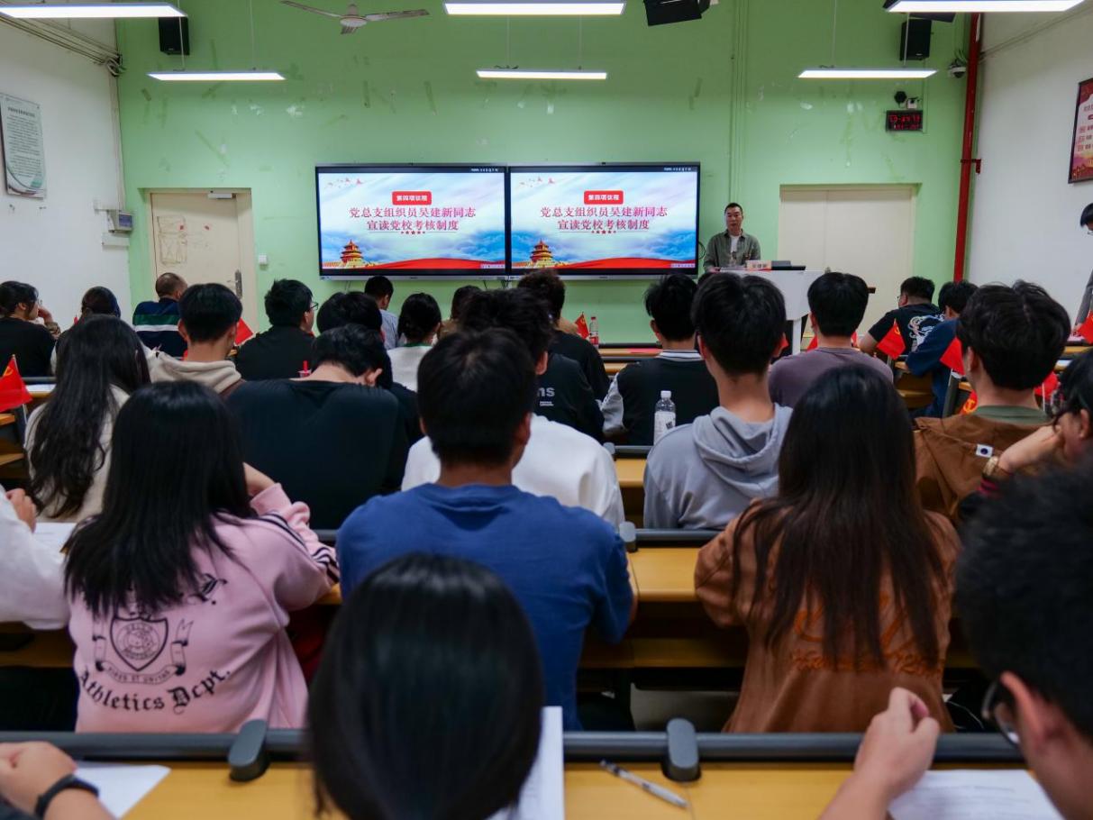 紧接着,信息与智慧交通学院党总支组织员吴建新同志宣读了党校考核制度,旨在帮助学员们更深入地了解党的知识,明确党员的权利与义务,并坚定共产主义信念。他强调,这次党校学习机会难得,学员们应当加倍珍惜,通过认真学习和领会党校课程内容,不断提升个人的思想政治觉悟,确保学习成果转化为实际行动,为党和人民的事业贡献力量。