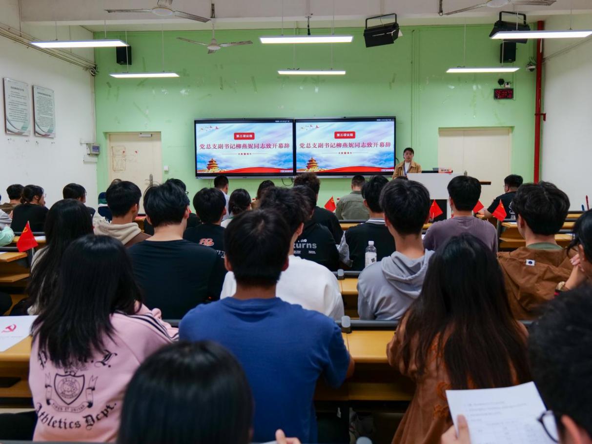 为弘扬党的二十届三中全会精神,深入学习贯彻习近平新时代中国特色社会主义思想,持续推进积极分子思想工作,在党的领导下坚定不移的向着中国特色社会主义新时代建设的道路往下走。信息与智慧交通学院于2024年11月12日在福道园自强楼1-4教室开展了2024年信息与智慧交通学院第一期党校开班仪式。由党总支副书记柳燕妮、党总支组织员吴建新、第一党支部书记段吴勇、第二党支部书记潘倩滢、分团委宣传委员周文广、全体辅导员以及2024年第一期党校校学员共同参与,本次仪式由分团委组织部刘宇兴主持。
