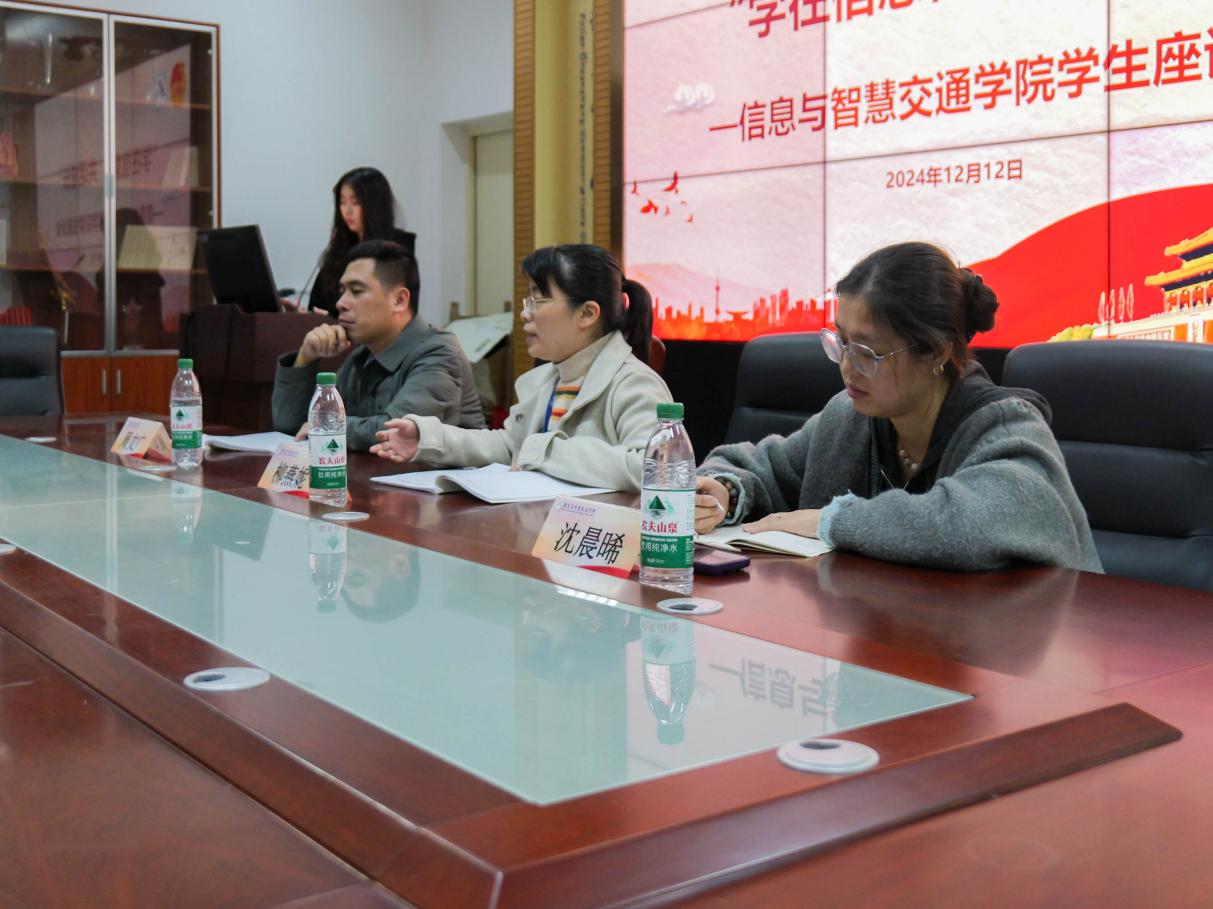 为全面贯彻学习习近平总书记关于青年工作的重要指示精神,深入了解团学干部在工作与学习中的实际问题,信息智慧交通学院于2024年12月12日在福道园自强楼2-1召开了“学在信息,共话成长”主题学生座谈会。本次会议由党总支副书记柳燕妮、分团委副书记沈晨晞、分团委宣传委员周文广及各团学干部们共同参与。