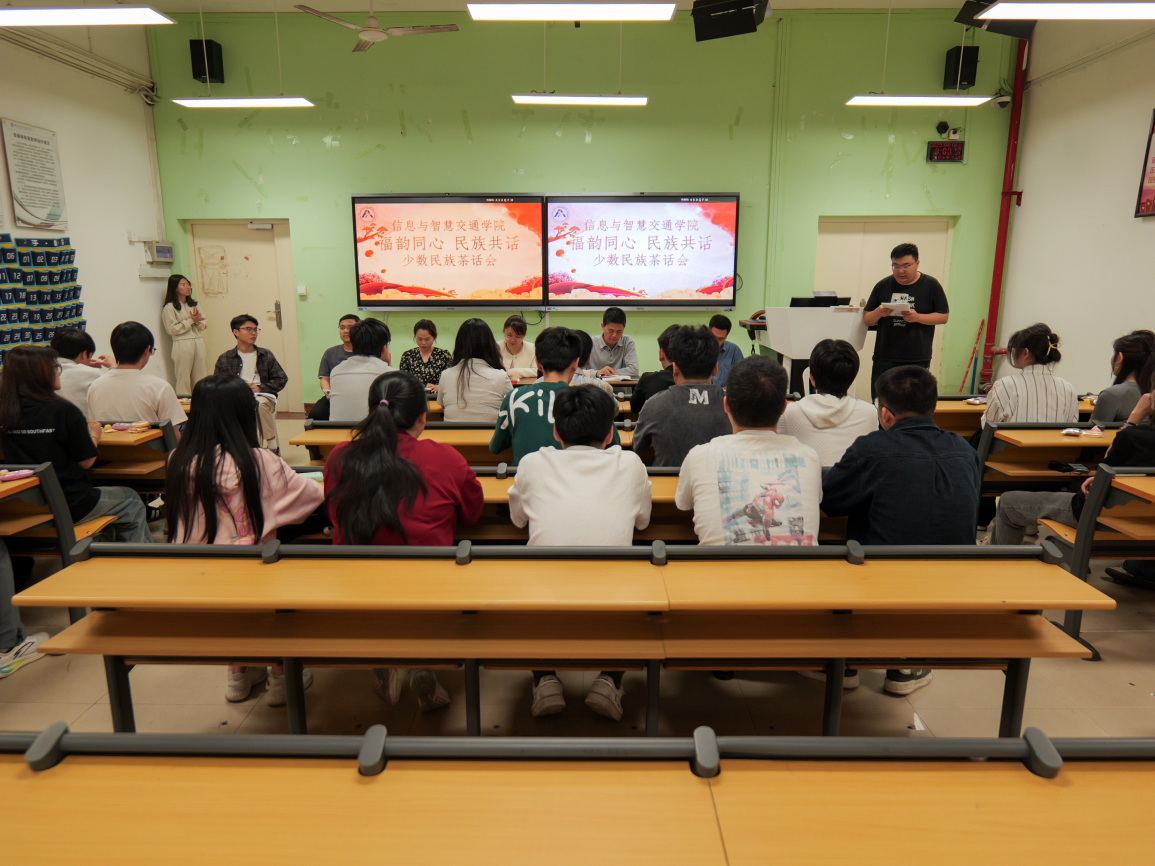 为深入贯彻党的民族政策,弘扬民族团结精神,促进各民族之间的交流与融合,营造和谐、多元的校园文化氛围。信息与智慧交通学院于4月16日在福道园自强楼1-4教室开展了“福韵同心,民族共话”少数民族茶话会。此次活动旨在将民族团结理念融入日常,共同构建一个充满活力、团结友爱的校园环境。