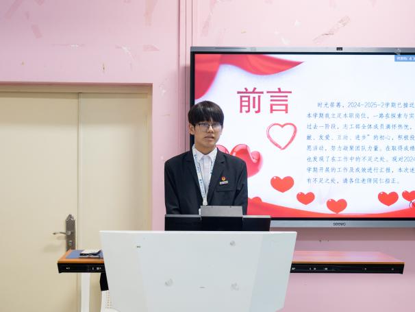 会上,院团委、学生会各部门依次上台进行述职汇报,回顾本学期工作成果与不足。各部门以数据和案例为支撑,全面总结了在组织建设、活动开展、服务同学等方面的工作成效。同时也对工作中存在的问题进行了深入反思,形成重点改进措施清单,对未来工作计划做出规划,提出具体行动方案