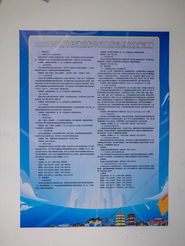 活动前,工作人员梳理了福建省十地市促进高校毕业生就业创业政策,并精心设计制作了宣传海报。海报核心内容涵盖就业权益保障、基层就业补贴、创新创业扶持等关键板块。