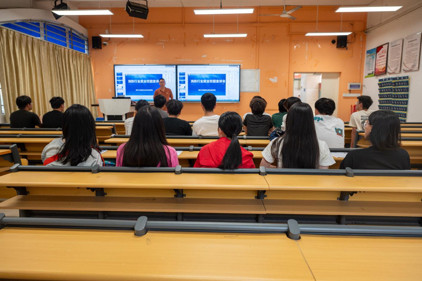 宣讲会上,福建派英科技有限公司代表首先介绍了公司在消防行业技术研发、工程服务等领域的业务成果与企业文化。随后,针对毕业生关注的职业发展问题,企业代表详细解读了岗位任职要求、工作内容、薪资福利体系及职业晋升路径。在问答环节,同学们围绕职业发展规划、岗位技能需求等方面向企业代表积极提问,企业代表逐一进行专业解答,现场气氛热烈。