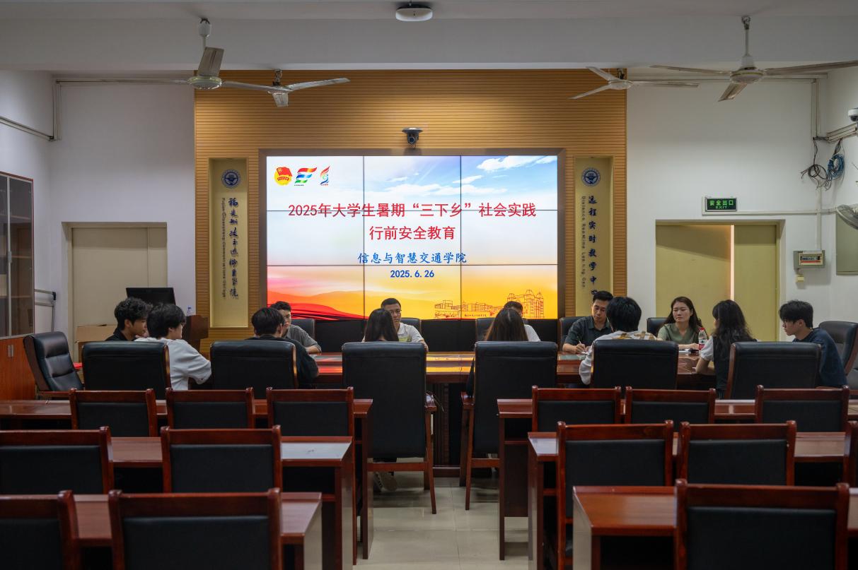 为切实筑牢大学生暑期“三下乡”社会实践的安全防线,提升同学们的安全防范意识与风险应对能力,信息与智慧交通学院于6月26日在福道园自强楼2-1会议室开展行前安全教育活动。