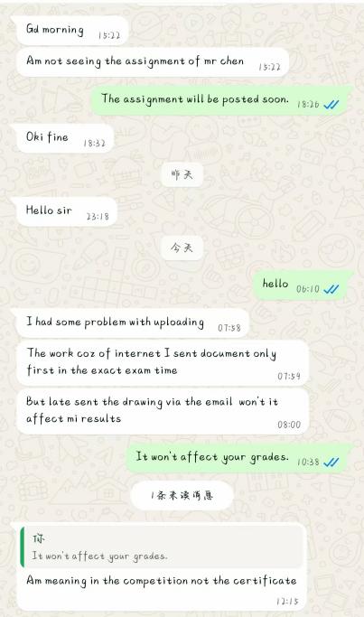 图2志愿者为非洲学员线上答疑、发通知邮件并保障线上决赛考试