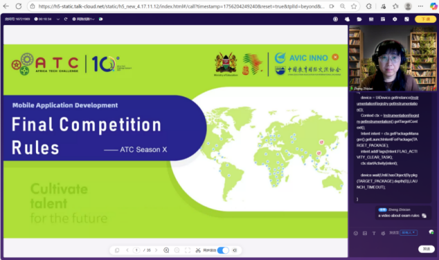 历经一月密集培训,移动应用开发赛项决赛成功举办,来自肯尼亚、埃及、加纳、乌干达、坦桑尼亚、赞比亚、津巴布韦7个国家的56支队伍、224名师生尽展所学、佳绩频传。中航国际成套设备有限公司在感谢信中高度评价:“郑志娴、李伙钦两位老师耐心授课、悉心指导,以及黄鸿杰等5位同学组成的线上学员管理团队克服时差认真负责,受到广大学员喜爱和欢迎。