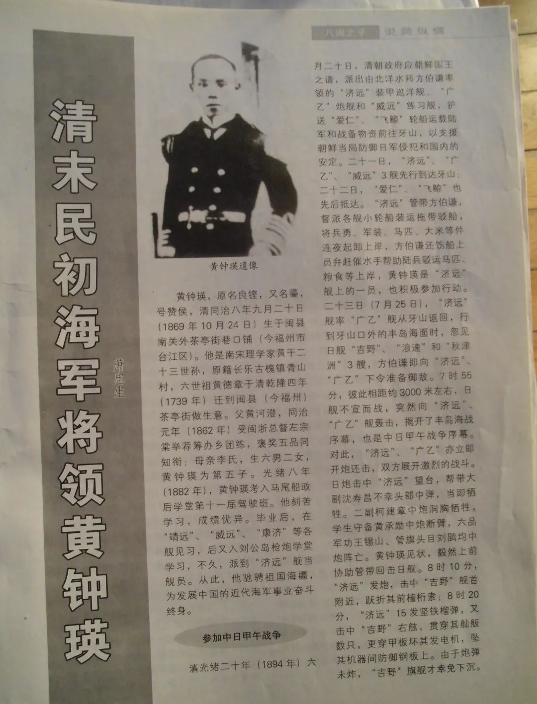 叔祖黄钟瑛系民国第一任海军总长兼海军总司令、上将