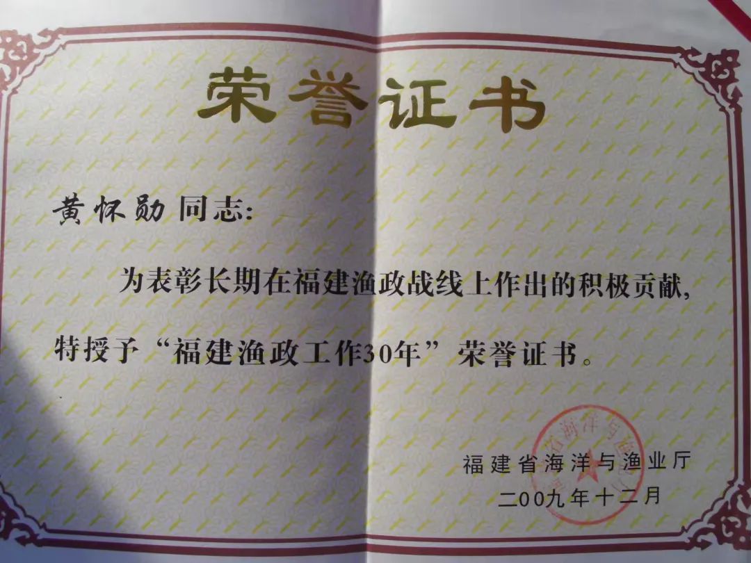 被“中华人民共和国渔业船舶检验局”评定为“高级验船师”。