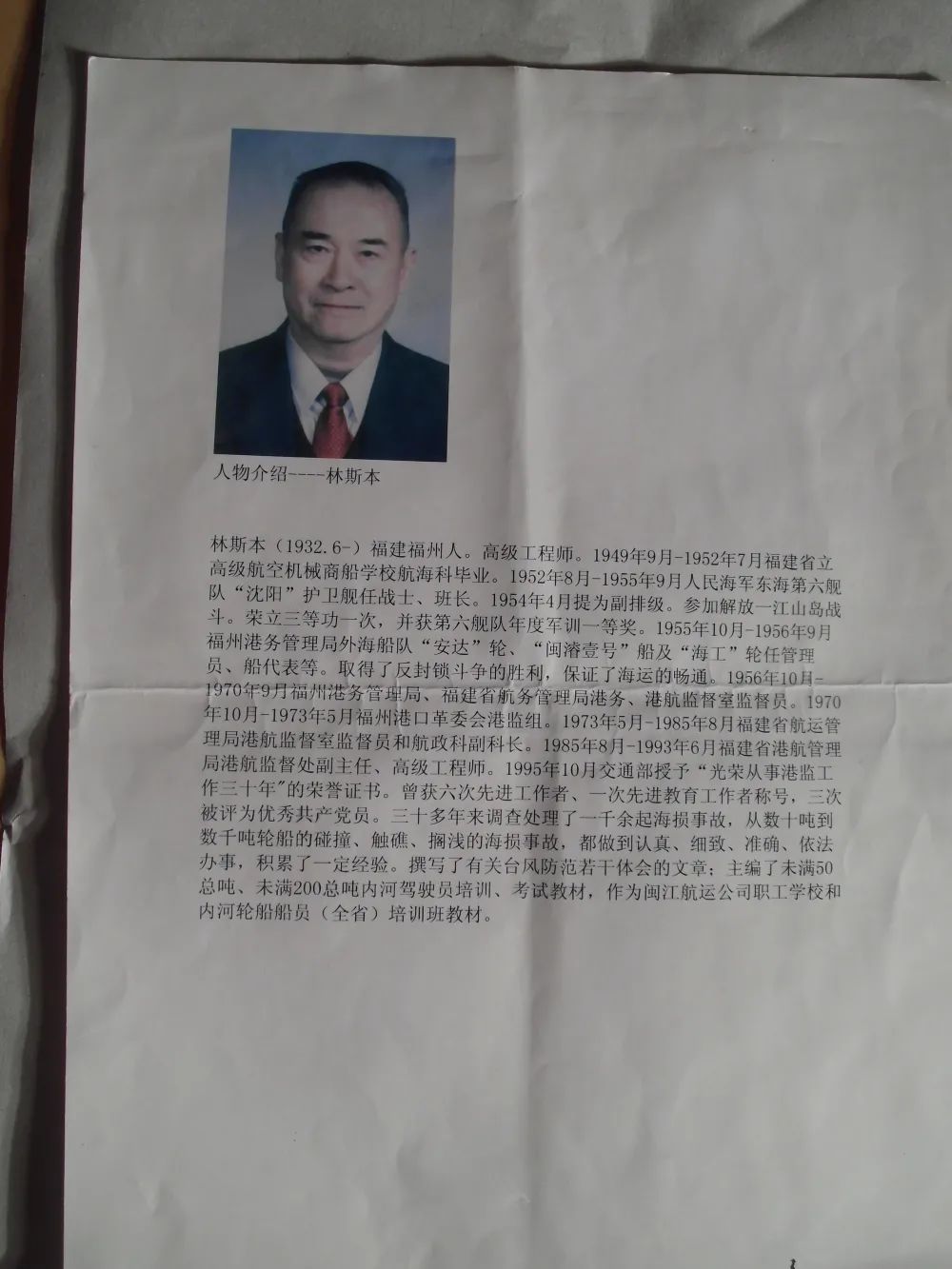 林斯本,1949年9月-1952年7月福建省高级航空机械 、商船学校航海科毕业。