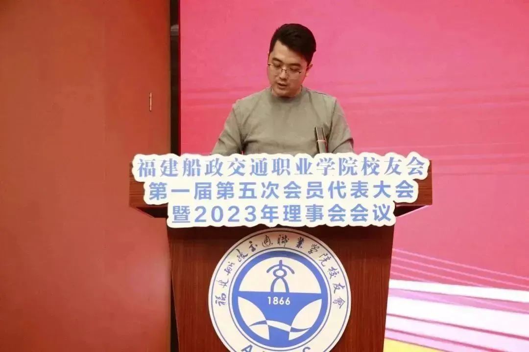 1月13日,福建船政交通职业学院校友会第一届第五次会员代表大会暨2023年理事会会议在学校福船园召开,学院党委书记陈宜大,党委副书记、院长陈锦辉,党委委员、副院长、校友会会长陈艳红,校友会常务副会长郭建康,学校各机关部门长,各二级学院党政领导、校友工作站代表,校友会理事会、监事会、秘书处成员,校友代表等共160多人参加会议。大会由学校马克思主义学院院长、校友会秘书长黄奕主持。