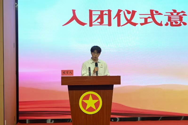机械与智能制造学院新团员王晨同学,代表第一批新团员发言,他表示,将以团员标准律己,勤学奋进,对标前辈,展现青春风采。