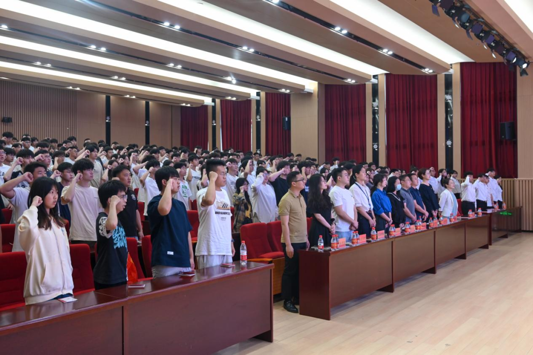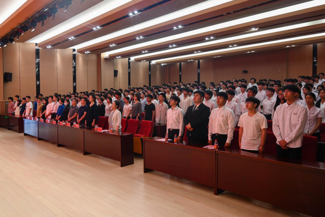 在学院团委学生兼职副书记夏昊城同学的领誓下,新团员们高举右拳庄严宣誓,铮铮誓言在会场回荡。这誓言将化作前行动力,激励新团员们不忘初心,践行承诺。