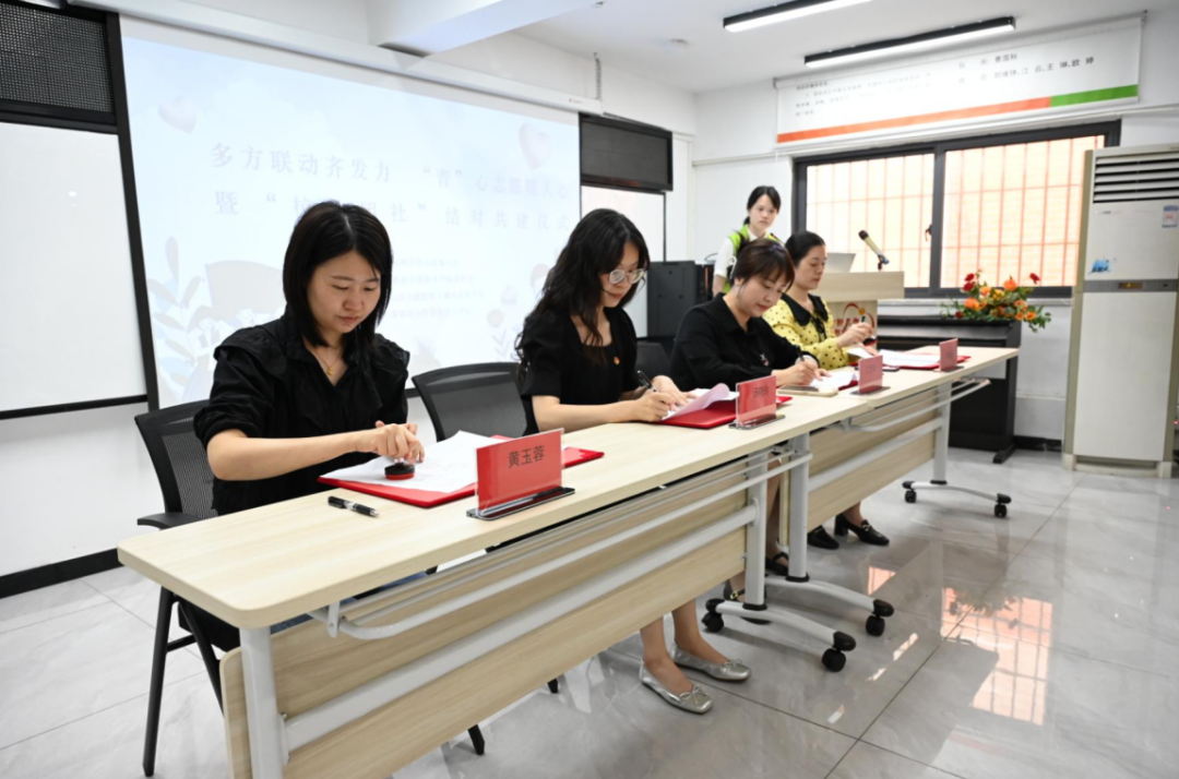 为积极打造校地“结对共建,双向赋能”工作新格局,锤炼青年学生服务社会能力,为基层服务、学校育人增添“新动能”,6月4日,学院团委与共青团福州市仓山区委员会、下渡街道下藤社区、仓山区小茉莉青少年事务社工中心举行“多方联动齐发力 ‘青’ 心志愿暖人心” 暨 “校地团社” 结对共建仪式。