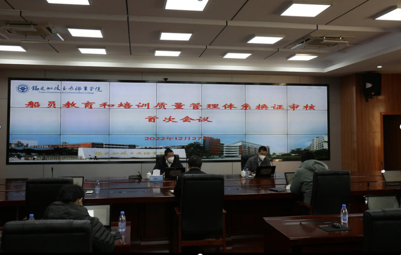 12月27日上午,审核组召开换证审核首次会议。学校向审核组作船员质量体系运行情况报告。审核组林祥仲组长宣布审核与核验目的、依据、程序、方法和相关纪律,通报审核计划及核验计划,介绍文件审核情况。最高管理者陈锦辉院长确认核验计划,并表示所有受审部门将严格遵守审核纪律,根据审核组的审核计划,全力配合审核组的工作,确保各项工作有序开展。