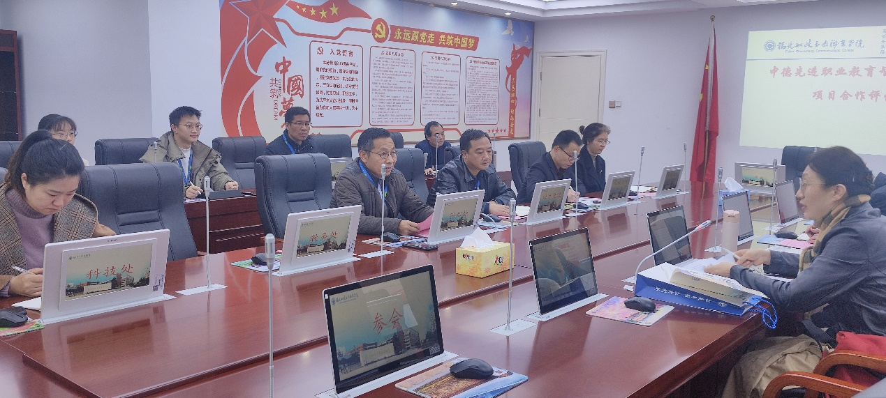 机械与智能制造学院副院长陈贵清就中德先进职业教育合作项目情况从专业概况、建设成效、方案规划、措施保障等多个方面向评审专家进行了详细汇报。