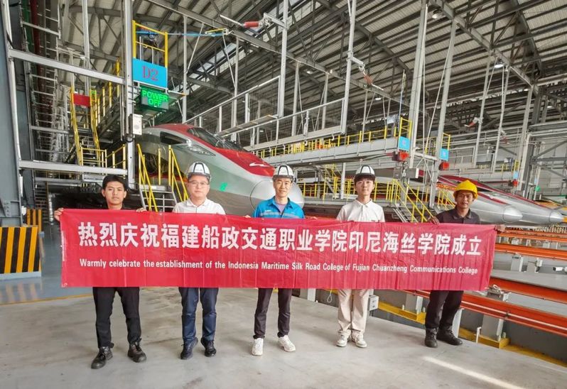 近日,在福建省教育厅的指导支持下,福建船政交通职业学院分别与印尼中国高速铁路有限公司、印尼阿拉扎大学孔子学院及北京全路通信信号研究设计院集团有限公司共建的“印尼海丝学院”揭牌仪式于印尼首都雅加达成功举行。印尼中国高速铁路有限公司中方执行董事张明、财务董事杨东,印尼阿拉扎大学孔子学院中方院长王大昕,北京全路通信信号研究设计院集团项目部负责人,以及福建船政交通职业学院轨道交通学院副院长陈宏意出席活动,相关企业员工代表和院校师生代表参加活动。