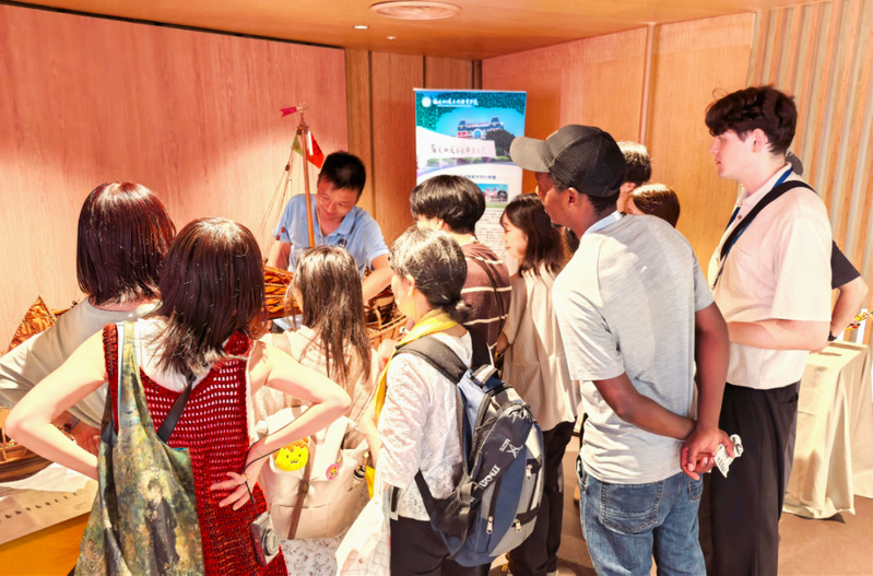 展位现场,精巧的福船模型、精湛的传统技艺演示与丰富的图文影像资料相得益彰,生动还原了水密隔舱这一古老造船智慧的奥秘,迅速吸引各国游客、参展方代表及媒体驻足关注。我院教师热情接待每一位参观者,细致讲解福船的历史渊源与文化价值,还通过互动演示工艺环节,让国际观众沉浸式感受中华优秀非物质文化遗产的独特风采。