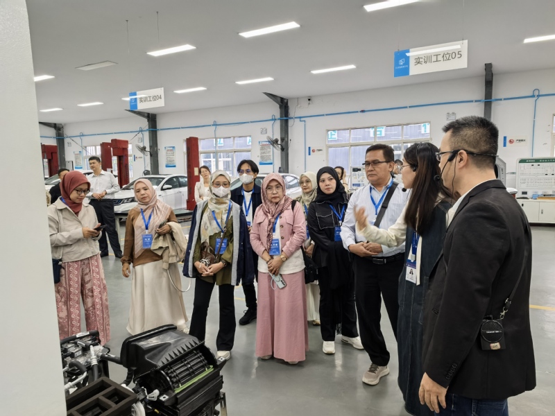访问团参观了学院新能源汽车产教融合示范园、先进舰船模拟器、航空实训基地、公共安全产教融合实训基地、轨道交通信号实训中心等实训基地。在参观过程中,代表团成员对实训基地建设、实践技能培养、校企合作以及丰富的教学资源给予了高度评价。